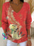 Vintage Christmas Art Print Casual V-Neck Pullover Sweater