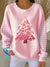 Women's Breast Cancer Christmas Print Knit Crew Neck Long Sleeve Top