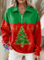 Women's Christmas Tree Pattern Art Print Casual Cotton Zip Sweatshirt