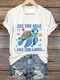 Women's Floral Print Long- Sleeve Linen- Blend Shirt With Round Neck