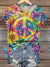 Colorful Peace Symbol Print Casual Round Neck Short Sleeve T-Shirt