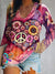 Peaceful Love Sunflower Multicolor Printed Casual V-Neck Long Sleeve Top
