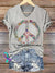 Women's Floral Peace Sign V-neck Casual T-Shirt