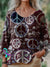 Women's Peace Sign Floral Print Casual Cotton And Linen Shirt