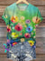 Colorful Garden Print Casual Round Neck Short Sleeve T-Shirt