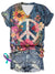 Women's Floral Peace Sign Love and Peace V-neck Casual T-Shirt