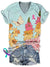 Women's Let It Bee Art Print V-neck Casual T-Shirt
