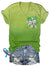 Lucky Clover Bow St. Patrick's Day Gradient V-Neck Casual Short Sleeve T-Shirt