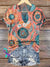 Women's Floral Feather V-neck Casual T-Shirt