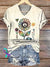 Women's Floral Peace Sign V-neck Casual T-Shirt