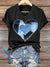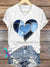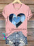 Women's Heart Collage Denim Art Vintage V-neck Casual T-Shirt