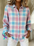 Women's Breast Cancer Awareness Pink Plaid Print Casual Cotton Shirt