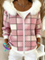 Women's Pink Plaid Print Fur Collar Zipper Casual Hooded Sweatshirt