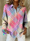 Women's Plaid Pattern Art Print Casual Cotton Denim Pants
