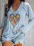 Autism Love Puzzle Handshake Print V-Neck Long Sleeve Top