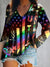 Autism Rainbow Flag Print V-Neck Long Sleeve Top