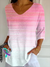 Casual Abstract Stripes V Neck Three Quarter Sleeve T-shirt