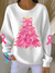 Christmas Tree Breast Cancer Awareness Print Casual Sweatshirt