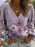 Women's Alzheimer's Awareness Floral Print Casual Cotton And Linen Shirt