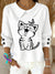 Women's Cute Cat Print Cat Lovers Cat Mom Gift Casual Baby Doll Collar Top
