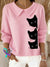 Women's Funny Cat Print Cat Lovers Casual Baby Doll Collar Top