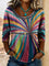 Women's Retro Art Patchwork Denim Print Casual 3/4 Sleeves Hollow Denim Shirt