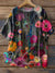 Women's Retro Floral Print Casual Linen Crew Neck Shirt