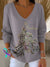 Women's Retro Merry Christmas Christmas Tree Print V Neck Sweater