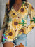 Women's Sunflower Bird Print Casual V Neck Long Sleeve Tops